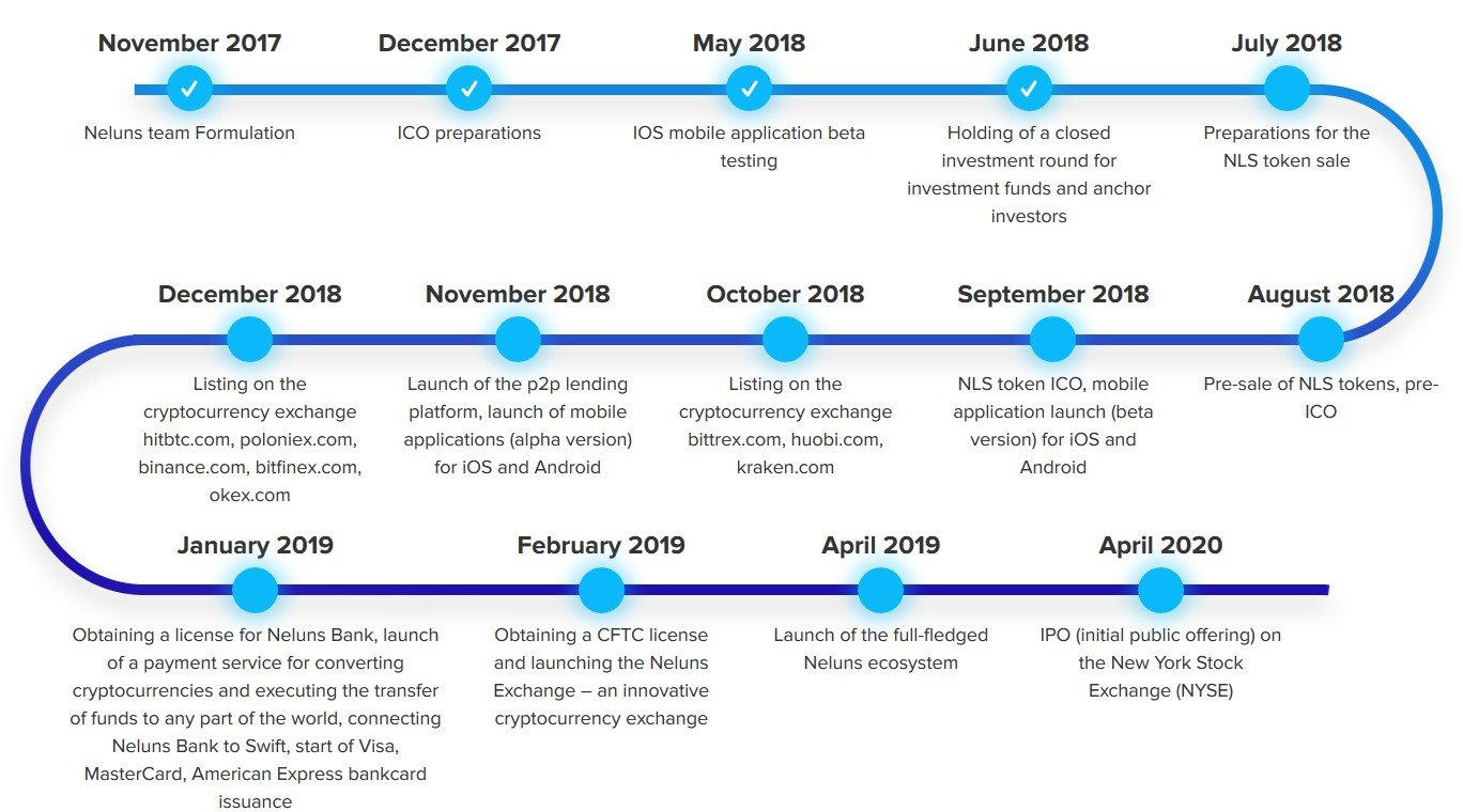 The price of one NLS token will reach $1,200 by 2021. In April 2020, the Neluns Blockchain Ecosystem plans to hold an IPO on the New York Stock Exchange.